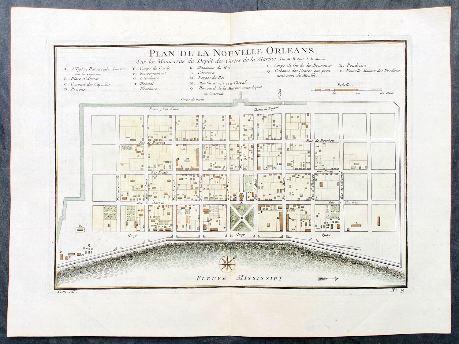 1757 J N Bellin Antique Map Early Plan The City of New Orleans