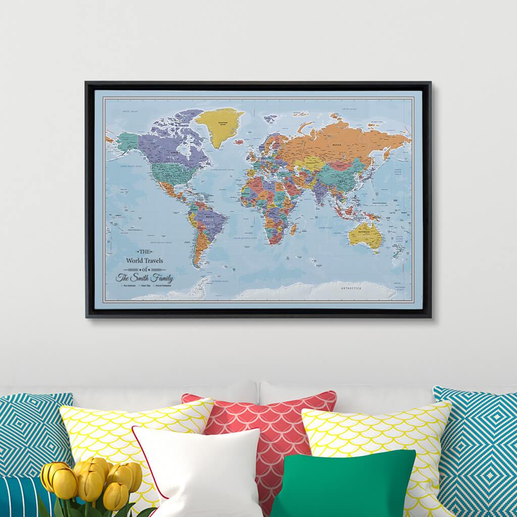 World Push Pin Map | Gallery Wrapped Large Canvas World Map Push