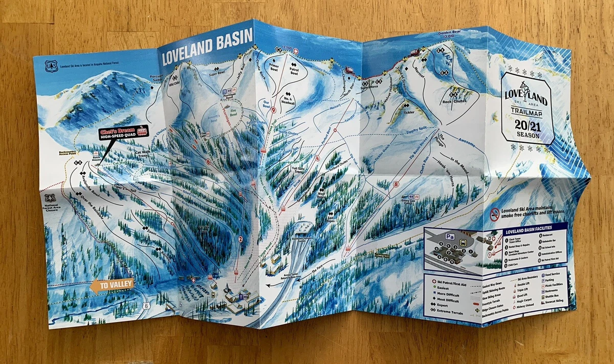 2020 21 LOVELAND BASIN & VALLEY Colorado Resort Ski Trail Map NEW