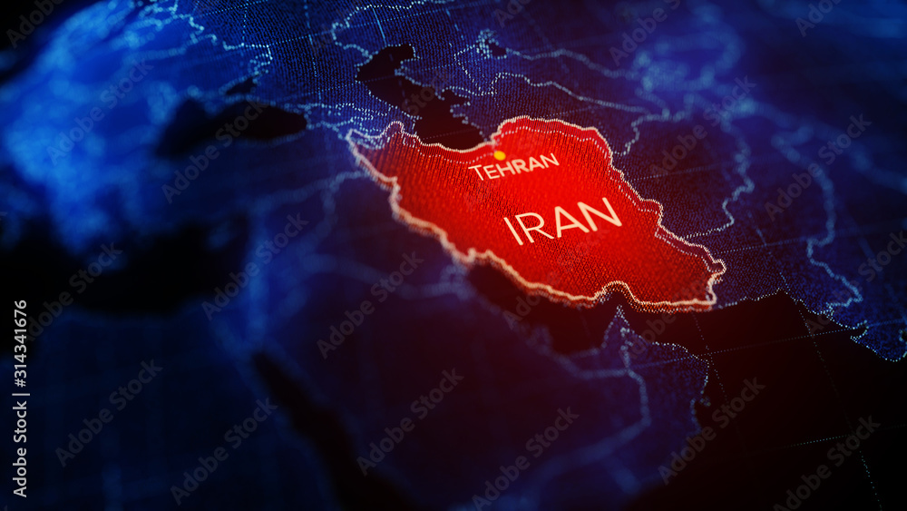 3d illustration, Middle east region map with Iran. Map of Iran a
